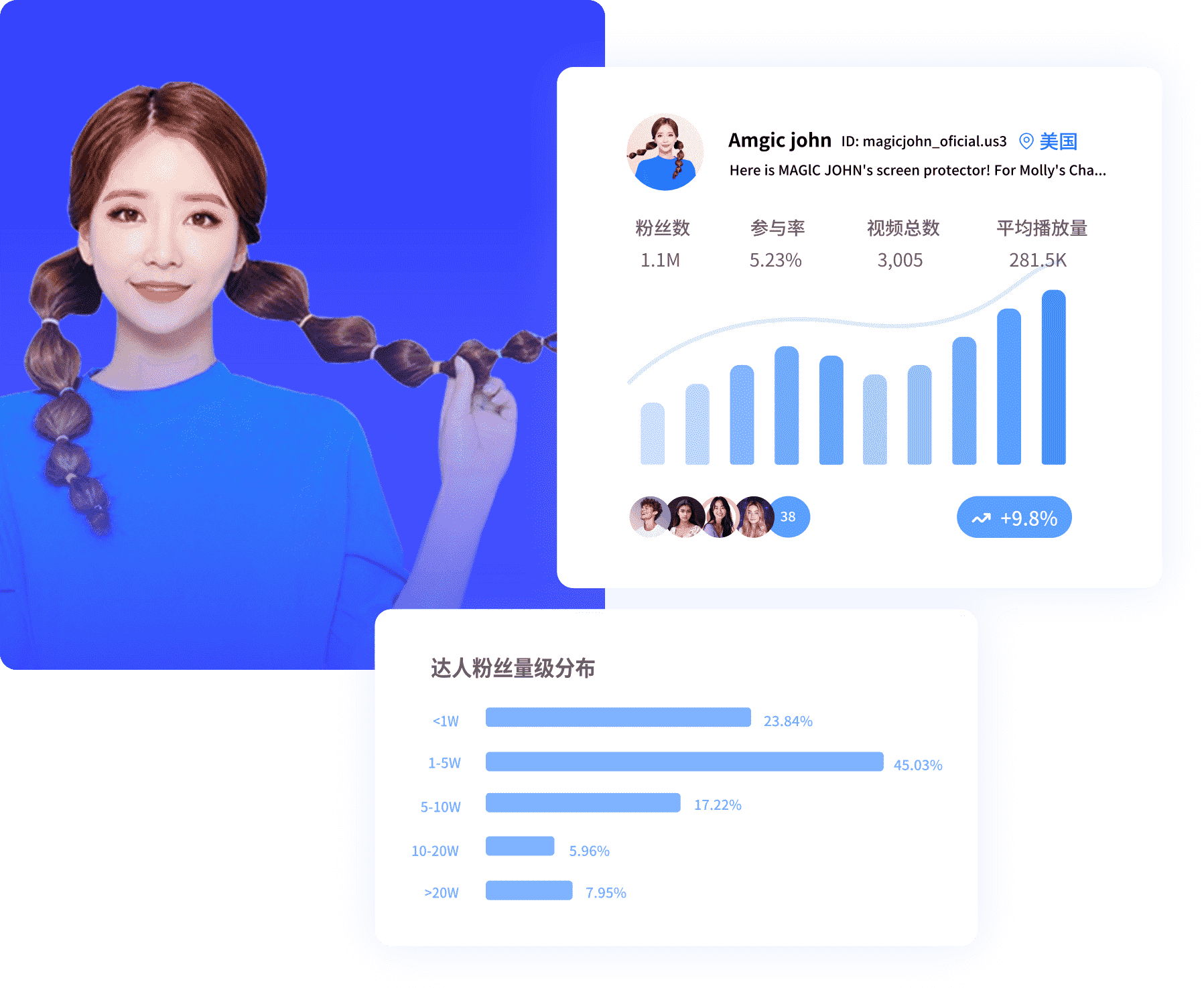 高效尋找并聯系達人,預判合作風險,追蹤效果,沉淀達人池,閉環管理,多次合作。